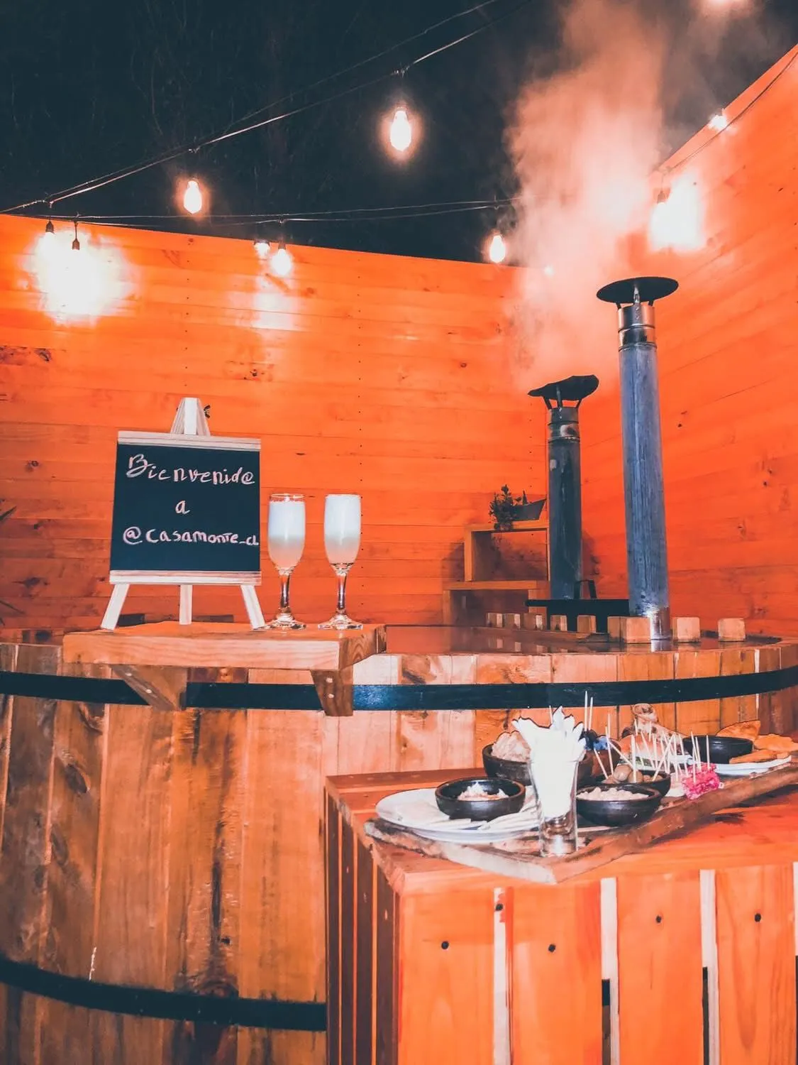 Disfruta de un momento de relajo en nuestras tinajas calientes al aire libre, ubicadas en un espacio privado dentro de Casa Monte.